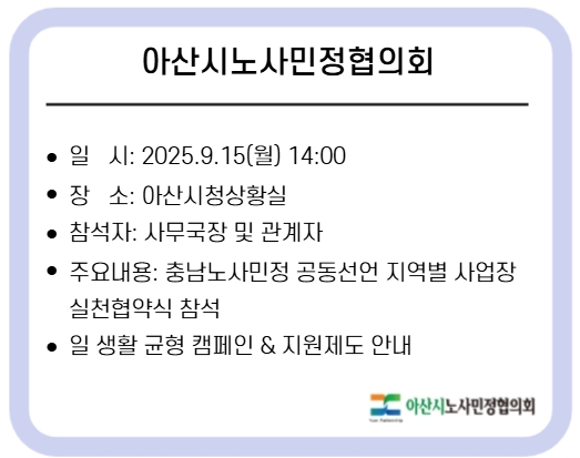 [25.11.3] 아산시, 노동정책 기본계획 수립 중간보고회